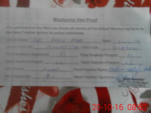 | Attendance Register | Head Teacher | MEA with School | Visit Proof |
