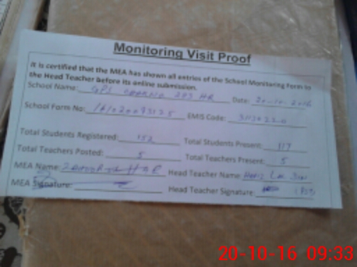 | Attendance Register | Head Teacher | MEA with School | Visit Proof |