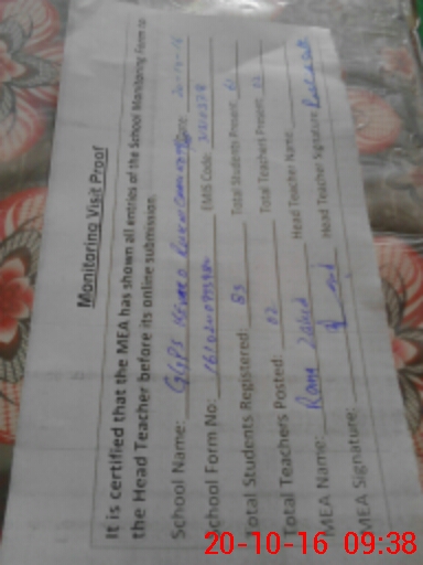 | Certified that this School was Inspected by the Undersigned MEA/DMO Today and the Information Stated Above is as Per Record. | |||||