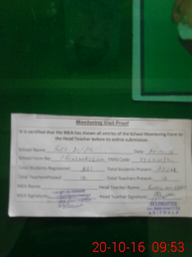 | Certified that this School was Inspected by the Undersigned MEA/DMO Today and the Information Stated Above is as Per Record. | |||||