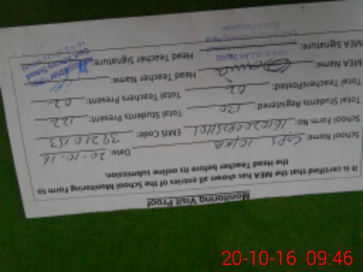 | Certified that this School was Inspected by the Undersigned MEA/DMO Today and the Information Stated Above is as Per Record. | |||||