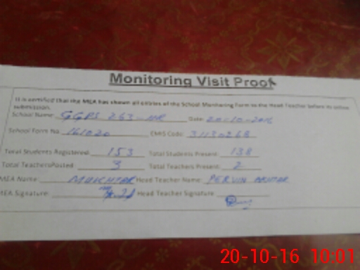 | EMIS Code: 31130268 | Name of School: GGPS CHAK NO. 263 HR | |||