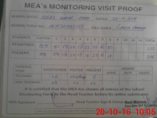 | Certified that this School was Inspected by the Undersigned MEA/DMO Today and the Information Stated Above is as Per Record. | |||||