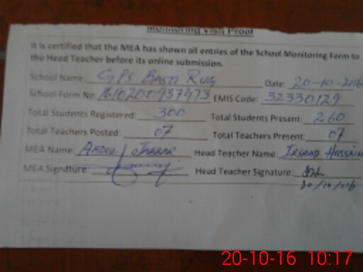 | EMIS Code: 32330129 | Name of School: GPS BASTI RUG | |||