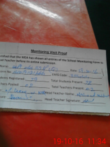 | Attendance Register | Head Teacher | MEA with School | Visit Proof |