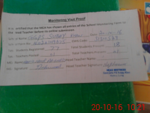| EMIS Code: 31310529 | Name of School: GGPS SUBAY KHAN | |||