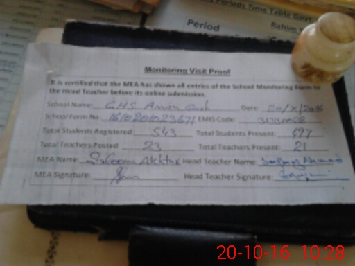 | Certified that this School was Inspected by the Undersigned MEA/DMO Today and the Information Stated Above is as Per Record. | |||||