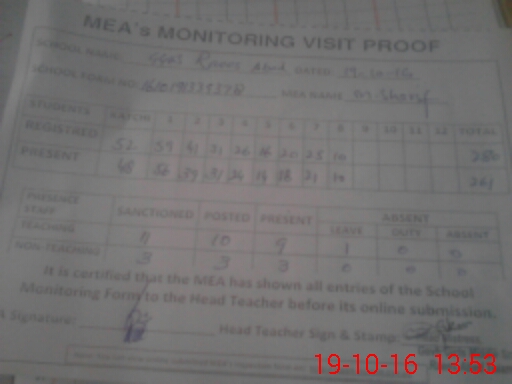 | Certified that this School was Inspected by the Undersigned MEA/DMO Today and the Information Stated Above is as Per Record. | |||||