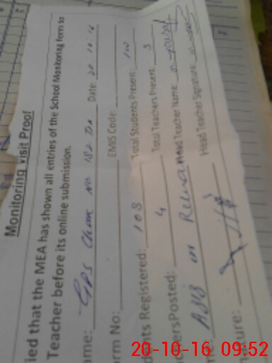 | Attendance Register | Head Teacher | MEA with School | Visit Proof |