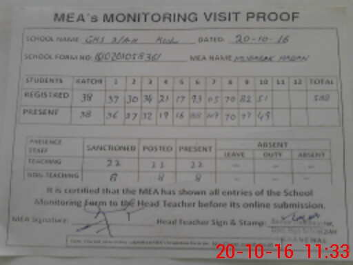 | Certified that this School was Inspected by the Undersigned MEA/DMO Today and the Information Stated Above is as Per Record. | |||||