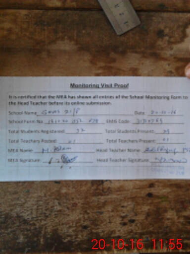 | Attendance Register | Head Teacher | MEA with School | Visit Proof |