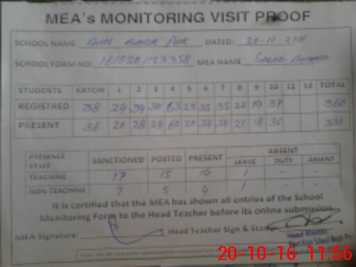 | Attendance Register | Head Teacher | MEA with School | Visit Proof |