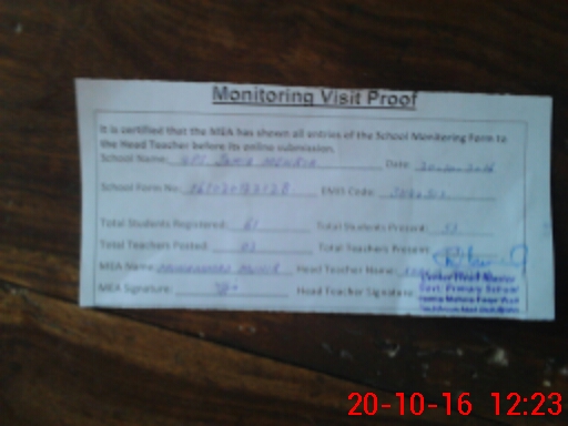 | Attendance Register | Head Teacher | MEA with School | Visit Proof |