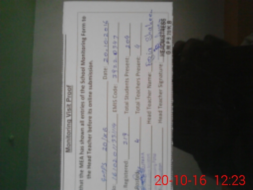 | Attendance Register | Head Teacher | MEA with School | Visit Proof |