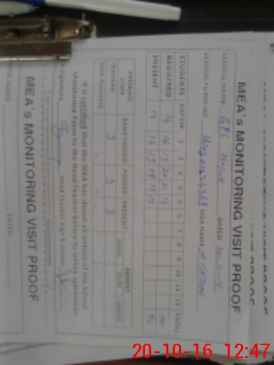| Attendance Register | Head Teacher | MEA with School | Visit Proof |