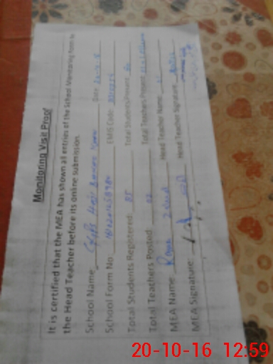 | Certified that this School was Inspected by the Undersigned MEA/DMO Today and the Information Stated Above is as Per Record. | |||||