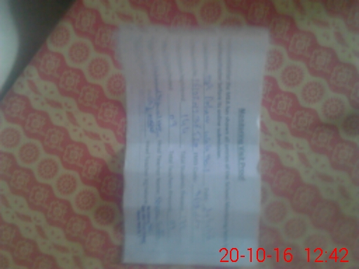 | Monitoring Date: 20-10-2016 | Start Time: 20-10-2016 12:15 PM | End Time: 20-10-2016 12:42 PM | Name of MEA: MU**** IK**** | |