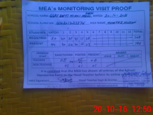 | Certified that this School was Inspected by the Undersigned MEA/DMO Today and the Information Stated Above is as Per Record. | |||||