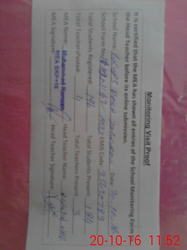 | Certified that this School was Inspected by the Undersigned MEA/DMO Today and the Information Stated Above is as Per Record. | |||||