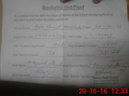 | EMIS Code: 31140005 | Name of School: GHS CANAL HAROON ABAD | |||