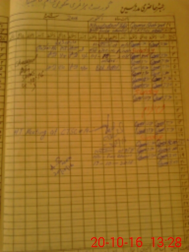 | CNIC | Full Name | Designation | R/C | Absence During Last Calender Month |