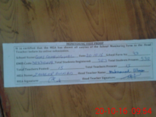 | EMIS Code: 38430018 | Name of School: GHS GHANGWAL | |||