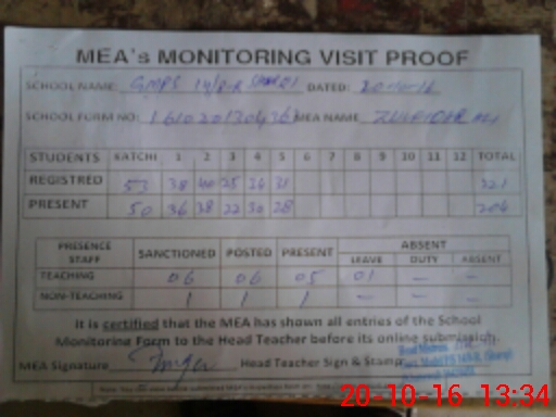 | Certified that this School was Inspected by the Undersigned MEA/DMO Today and the Information Stated Above is as Per Record. | |||||
