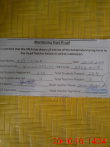 | EMIS Code: 39220158 | Name of School: GPS CHAK NO. 21 KB | |||