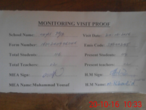 | EMIS Code: 39210245 | Name of School: GPS CHAK NO. 98/D | |||