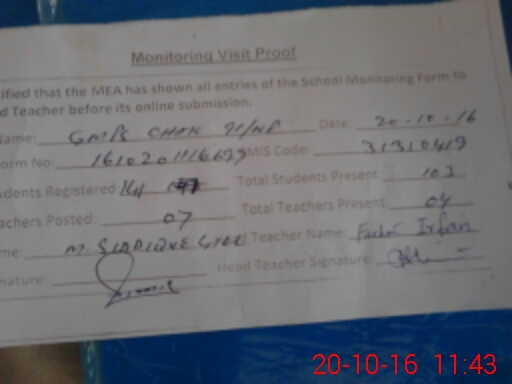 | Certified that this School was Inspected by the Undersigned MEA/DMO Today and the Information Stated Above is as Per Record. | |||||