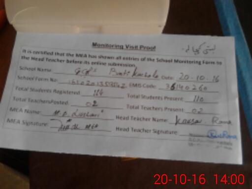 | Certified that this School was Inspected by the Undersigned MEA/DMO Today and the Information Stated Above is as Per Record. | |||||
