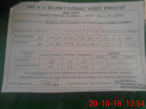 | Certified that this School was Inspected by the Undersigned MEA/DMO Today and the Information Stated Above is as Per Record. | |||||