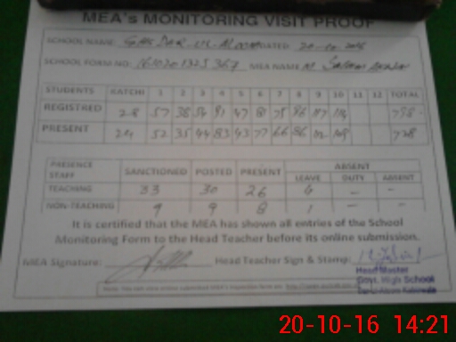| Certified that this School was Inspected by the Undersigned MEA/DMO Today and the Information Stated Above is as Per Record. | |||||