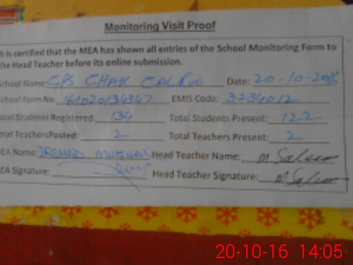 | EMIS Code: 32340124 | Name of School: GPS CHAK KALROO | |||