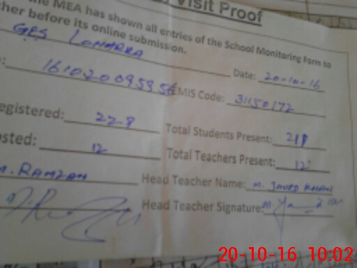 | Certified that this School was Inspected by the Undersigned MEA/DMO Today and the Information Stated Above is as Per Record. | |||||
