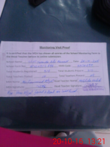 | Certified that this School was Inspected by the Undersigned MEA/DMO Today and the Information Stated Above is as Per Record. | |||||