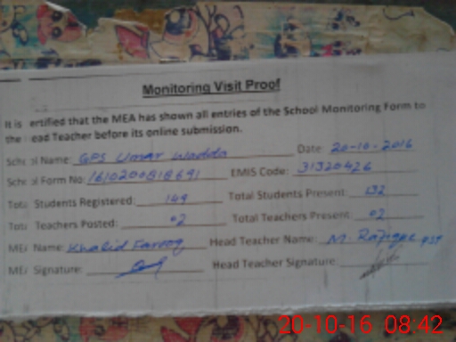 | EMIS Code: 31320426 | Name of School: GPS UMAR WADA DRIGH | |||