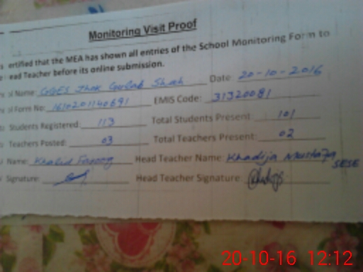 | EMIS Code: 31320081 | Name of School: GGES JHOK GHULAB SHAH | |||