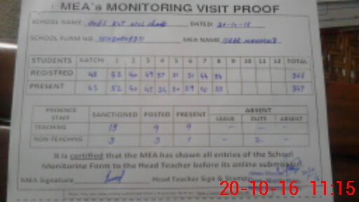 | Certified that this School was Inspected by the Undersigned MEA/DMO Today and the Information Stated Above is as Per Record. | |||||