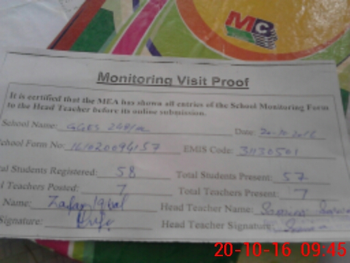 | Certified that this School was Inspected by the Undersigned MEA/DMO Today and the Information Stated Above is as Per Record. | |||||
