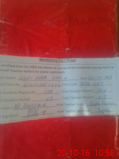| Attendance Register | Head Teacher | MEA with School | Visit Proof |
