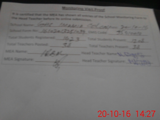 | Attendance Register | Head Teacher | MEA with School | Visit Proof |