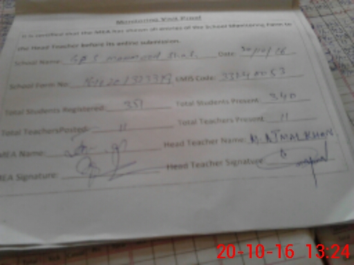 | Certified that this School was Inspected by the Undersigned MEA/DMO Today and the Information Stated Above is as Per Record. | |||||