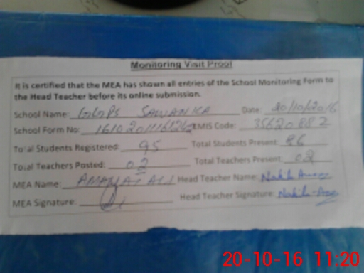 | Attendance Register | Head Teacher | MEA with School | Visit Proof |