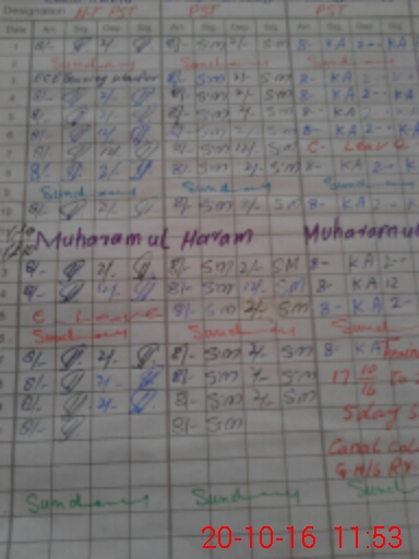 | CNIC | Full Name | Designation | R/C | Absence During Last Calender Month |