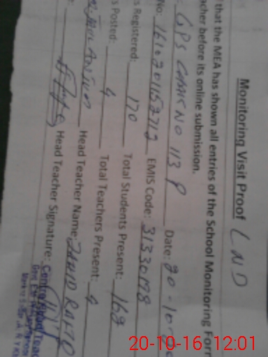 | Attendance Register | Head Teacher | MEA with School | Visit Proof |