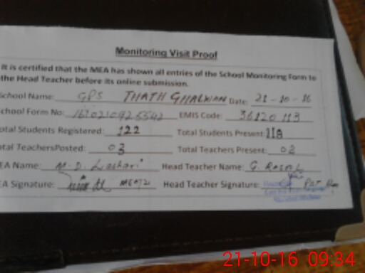 | EMIS Code: 36120113 | Name of School: GPS THATH GHALWAN P/O THATH GHAWAN | |||