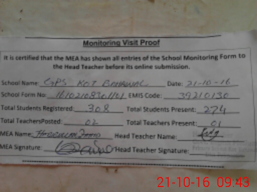 | EMIS Code: 39210130 | Name of School: GPS KOT BAHAWAL | |||
