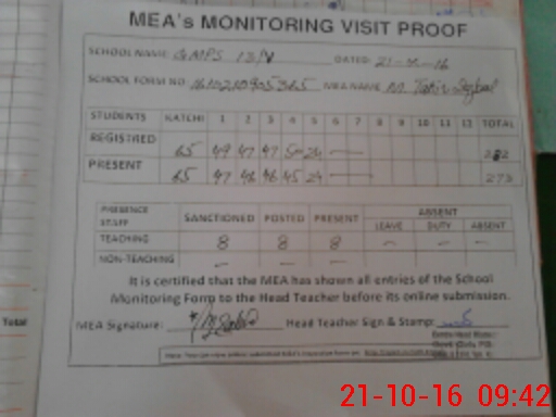 | Certified that this School was Inspected by the Undersigned MEA/DMO Today and the Information Stated Above is as Per Record. | |||||
