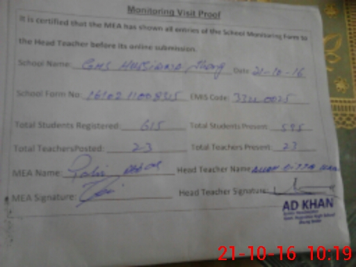 | EMIS Code: 33220025 | Name of School: GHS HUSSAINIA, JHANG | |||
